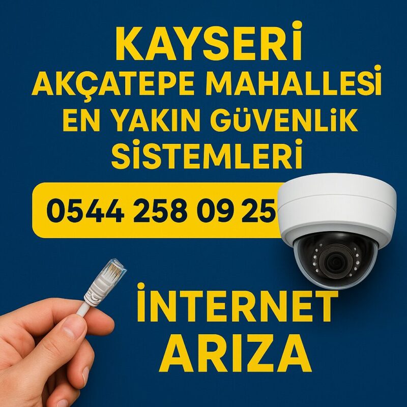 Kayseri Akçatepe Mahallesi en yakın güvenlik sistemleri ve internet arıza servisi arayışınızda profesyonel çözümler sunan ekibimize 0544 258 09 25 numarasından 7/24 ulaşabilirsiniz. Ev, iş yeri, apartman ve site güvenliği için kamera sistemleri kurulumu; modem, kablo, bağlantı ve internet arızalarına hızlı müdahale hizmeti sağlıyoruz.