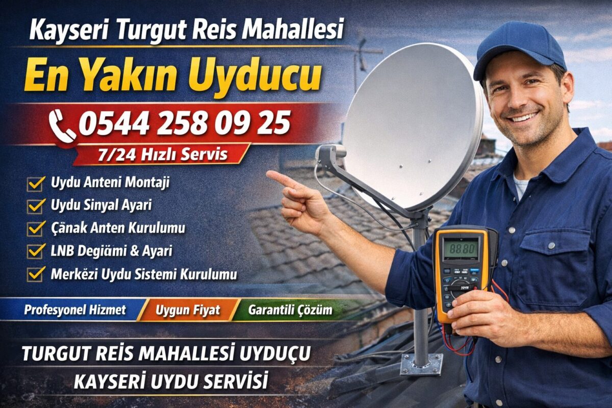 Kayseri genelinde özellikle Turgut Reis Mahallesi uyducu, Kayseri uydu servisi, çanak anten kurulumu, uydu arıza servisi gibi aramalarda hızlı ve güvenilir çözümler sunulmaktadır. Kayseri Turgut Reis Mahallesi En Yakın uyducu 0544 258 09 25 hizmeti ile televizyon yayınlarınızı kesintisiz izleyebilir, profesyonel uydu kurulum hizmetlerinden güvenle yararlanabilirsiniz.