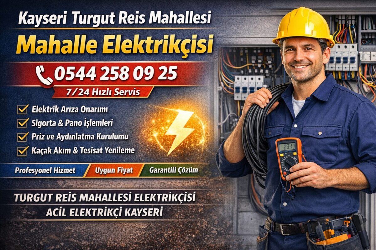 Kayseri’de özellikle Turgut Reis Mahallesi elektrikçi, Kayseri acil elektrikçi, mahalle elektrik ustası, elektrik arıza servisi gibi aramalarda hızlı ve güvenilir hizmet sunulmaktadır. Kayseri Turgut Reis Mahallesi mahalle elektrikçisi 0544 258 09 25 ile elektrik arızalarınızı güvenle çözdürebilir ve profesyonel elektrikçi hizmetinden yararlanabilirsiniz.