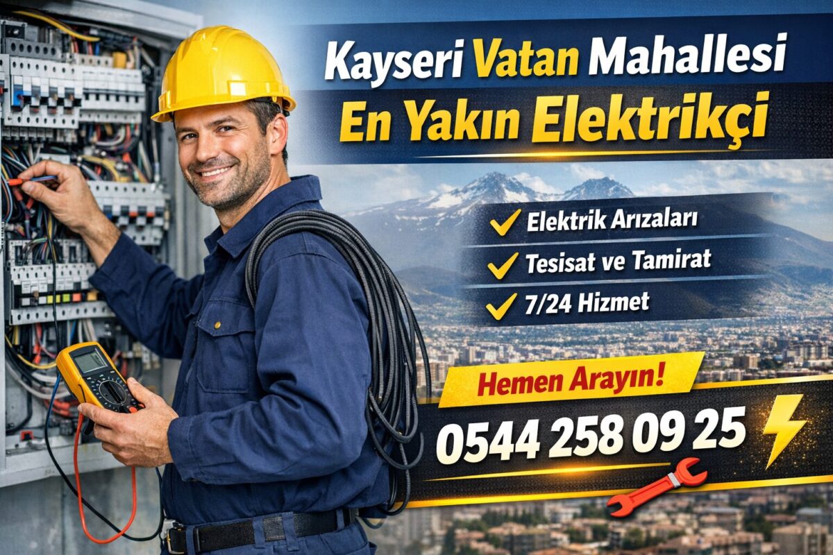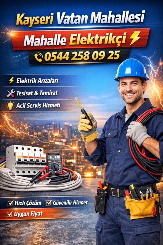 Kayseri’de elektrik arızaları ve elektrik tesisatı işleri için güvenilir bir usta bulmak çok önemlidir. Kayseri Vatan Mahallesi En Yakın Elektrikçi 0544 258 09 25 numarası ile hızlı ve profesyonel elektrikçi hizmeti alabilirsiniz. Ev, iş yeri ve apartmanlarda meydana gelen elektrik kesintisi, priz arızası, sigorta atması ve aydınlatma sorunları için Kayseri Vatan Mahallesi En Yakın Elektrikçi 0544 258 09 25 kısa sürede adresinize gelerek sorunu tespit eder ve kalıcı çözümler sunar. Kayseri Vatan Mahallesi En Yakın Elektrikçi 0544 258 09 25