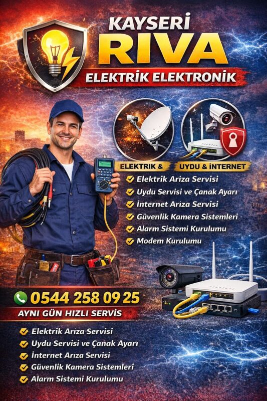 Kayseri’de elektrik arızaları, uydu sorunları veya güvenlik sistemi kurulumu gibi teknik ihtiyaçlar için profesyonel bir servis bulmak oldukça önemlidir. Riva Elektrik Elektronik, Kayseri genelinde elektrik, uydu ve güvenlik sistemleri alanında hızlı ve güvenilir hizmet sunan yerel bir teknik servis firmasıdır. Deneyimli ustaları ve profesyonel ekipmanları ile çalışan firma, ev ve iş yerlerinde meydana gelen teknik sorunları kısa sürede tespit ederek kalıcı çözümler üretir. Kayseri Vatan Mahallesi En Yakın Elektrikçi 0544 258 09 25