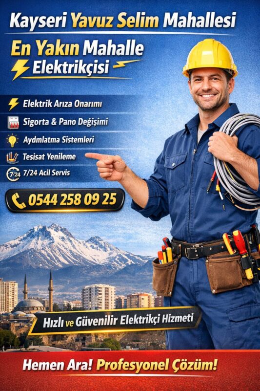 Kayseri’de elektrik arızaları, tesisat problemleri veya acil müdahale gerektiren durumlarda güvenilir bir hizmet almak oldukça önemlidir. Kayseri Yavuz Selim Mahallesi En Yakın Elektrikçi 0544 258 09 25 numarasıyla hızlı ve profesyonel çözümler sunarak bölgedeki tüm elektrik ihtiyaçlarınıza anında yanıt veriyoruz.