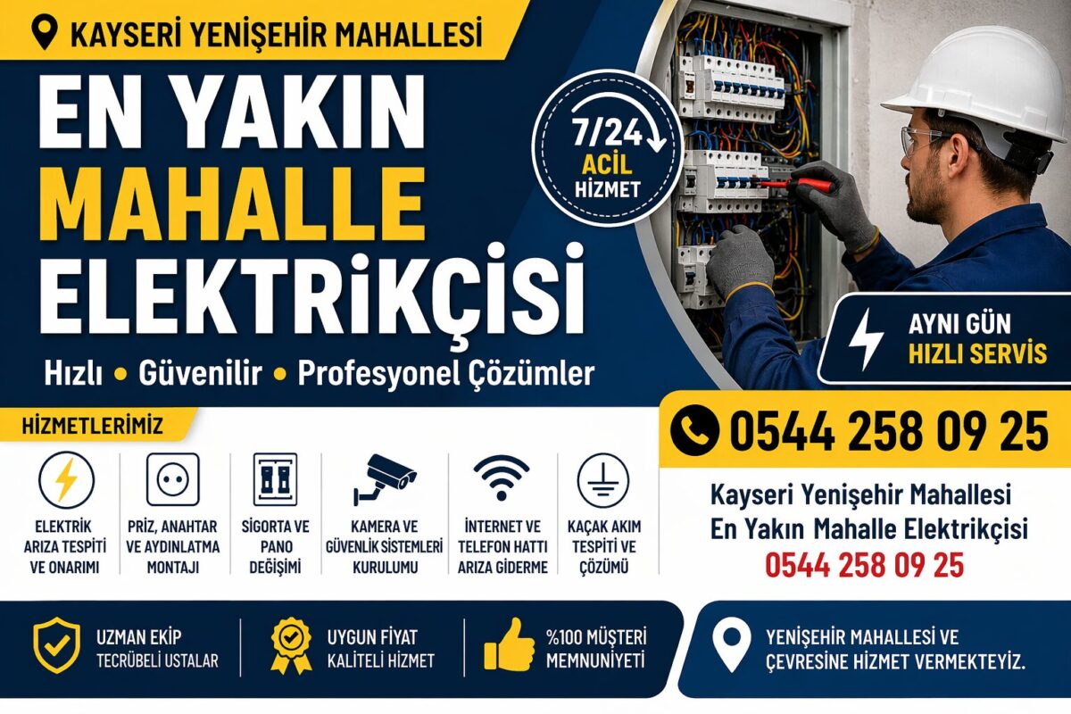 ⚡ Kayseri Yenişehir Mahallesi En Yakın Elektrikçi 0544 258 09 25